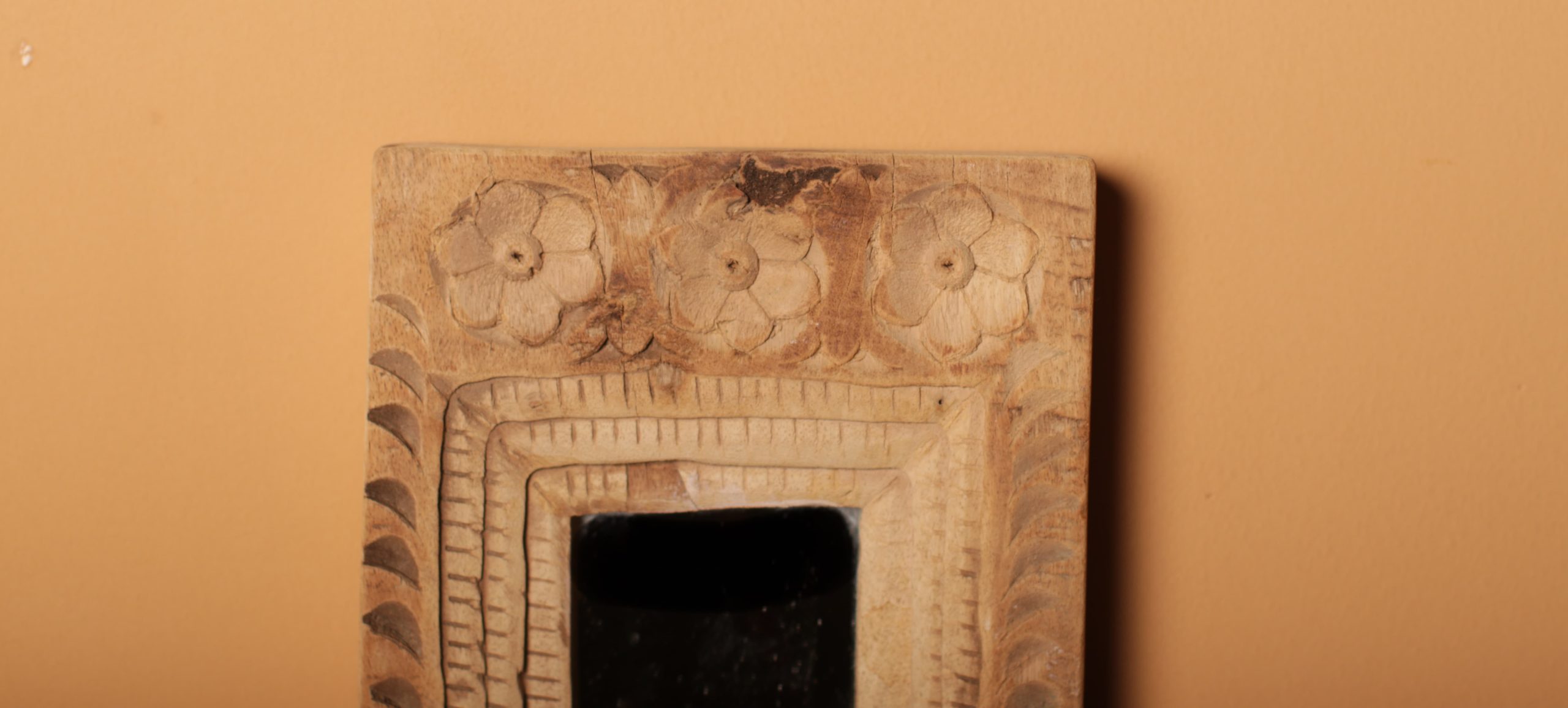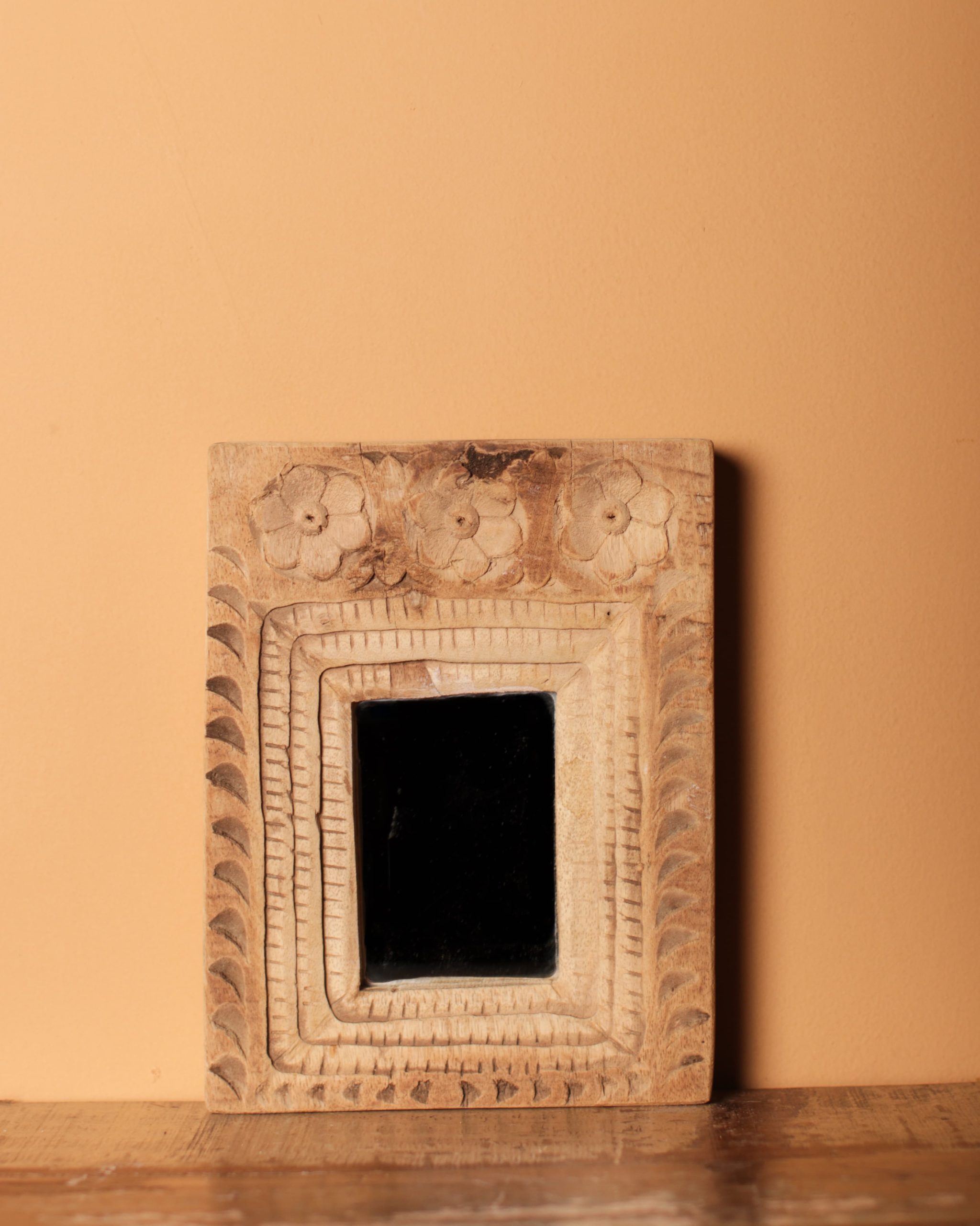 A piece that will complement any space, this charming Shrine Mirror has been handcrafted in the style of traditional Indian shrines. It is beautifully shaped from wood, hand-carved with attention to detail, and naural light wood finish. In the centre of each frame is a small mirror fitted at the back alongside a keyhole hook for easy hanging. The mirror’s quaint size makes it an ideal decorative piece for any bedroom, bathroom, or sitting room.