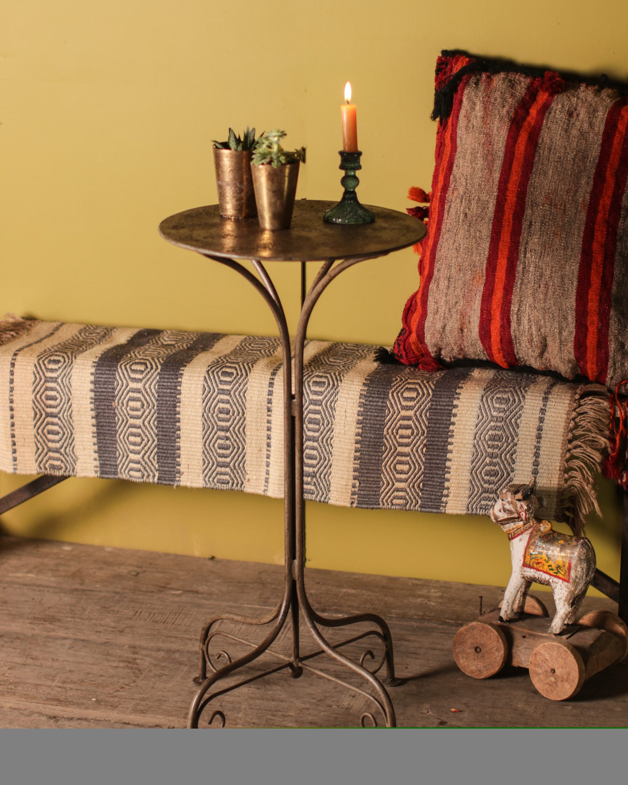 Elegance meets versatility with our handcrafted Occasional Table: featuring sweeping curving lines & vibrant distressed paint.