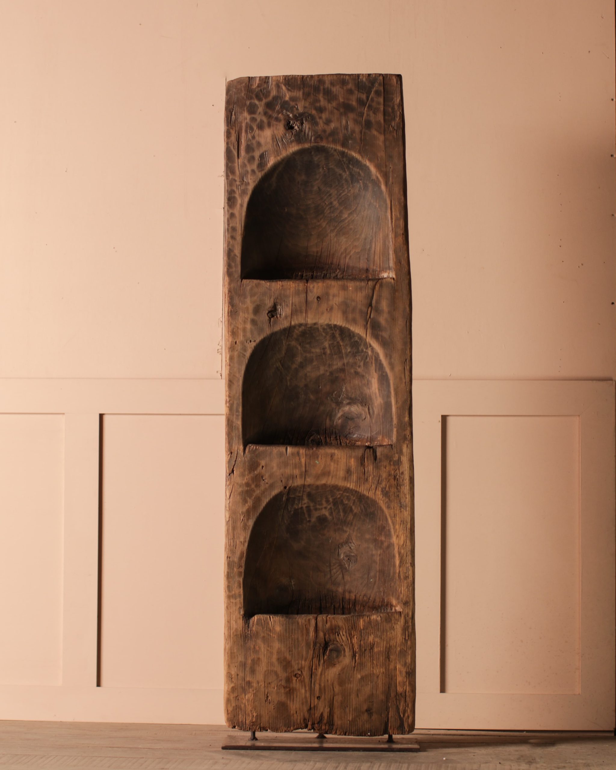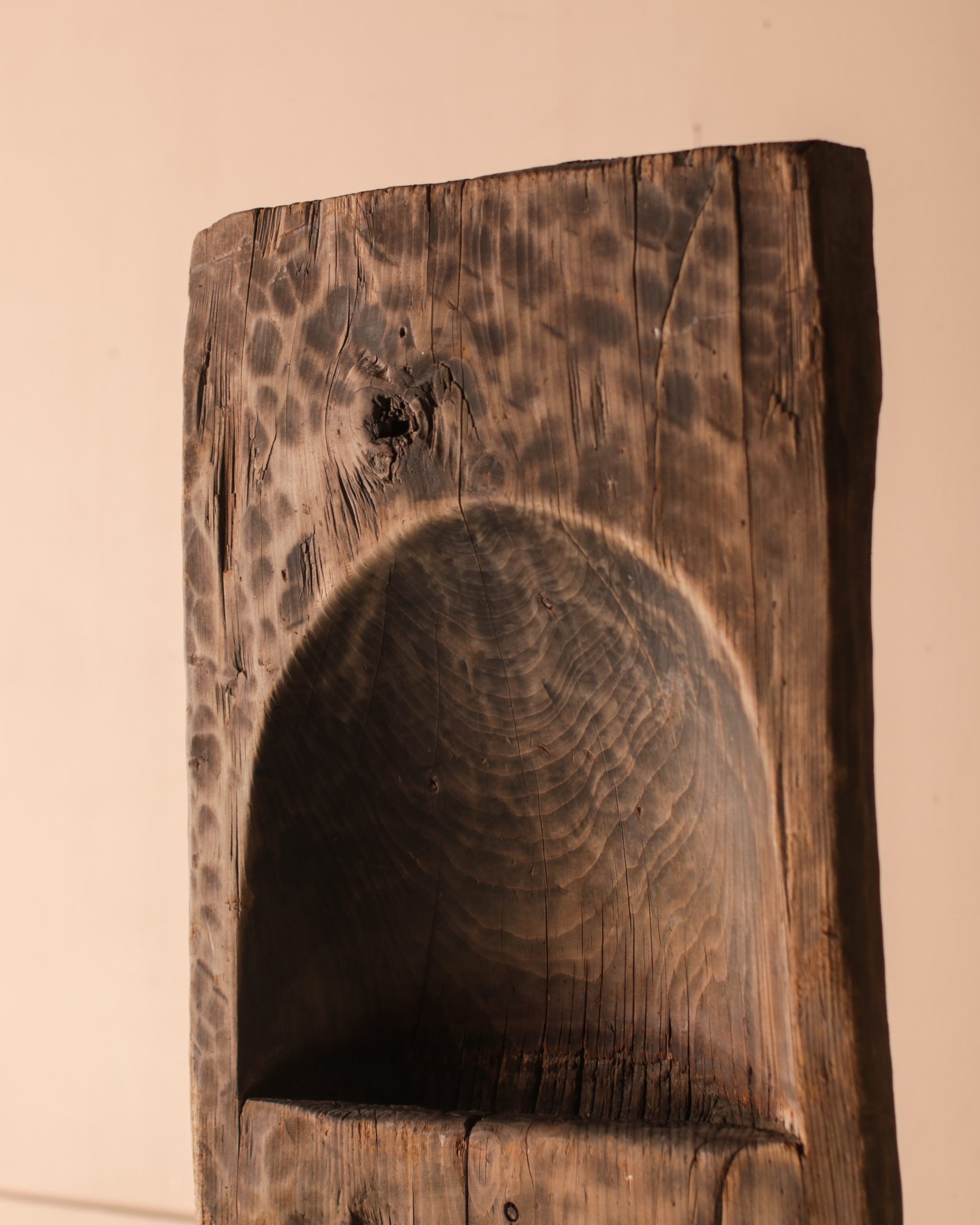 Nagaland, a tribal region in India, is known for its exquisite craftsmanship in carving furniture and tools from single pieces of wood. This Nagaland ladder, hewn from a single tree, showcases deep, smoothly carved steps, embodying the rustic charm and skilled artistry of the region’s traditional woodworking techniques.