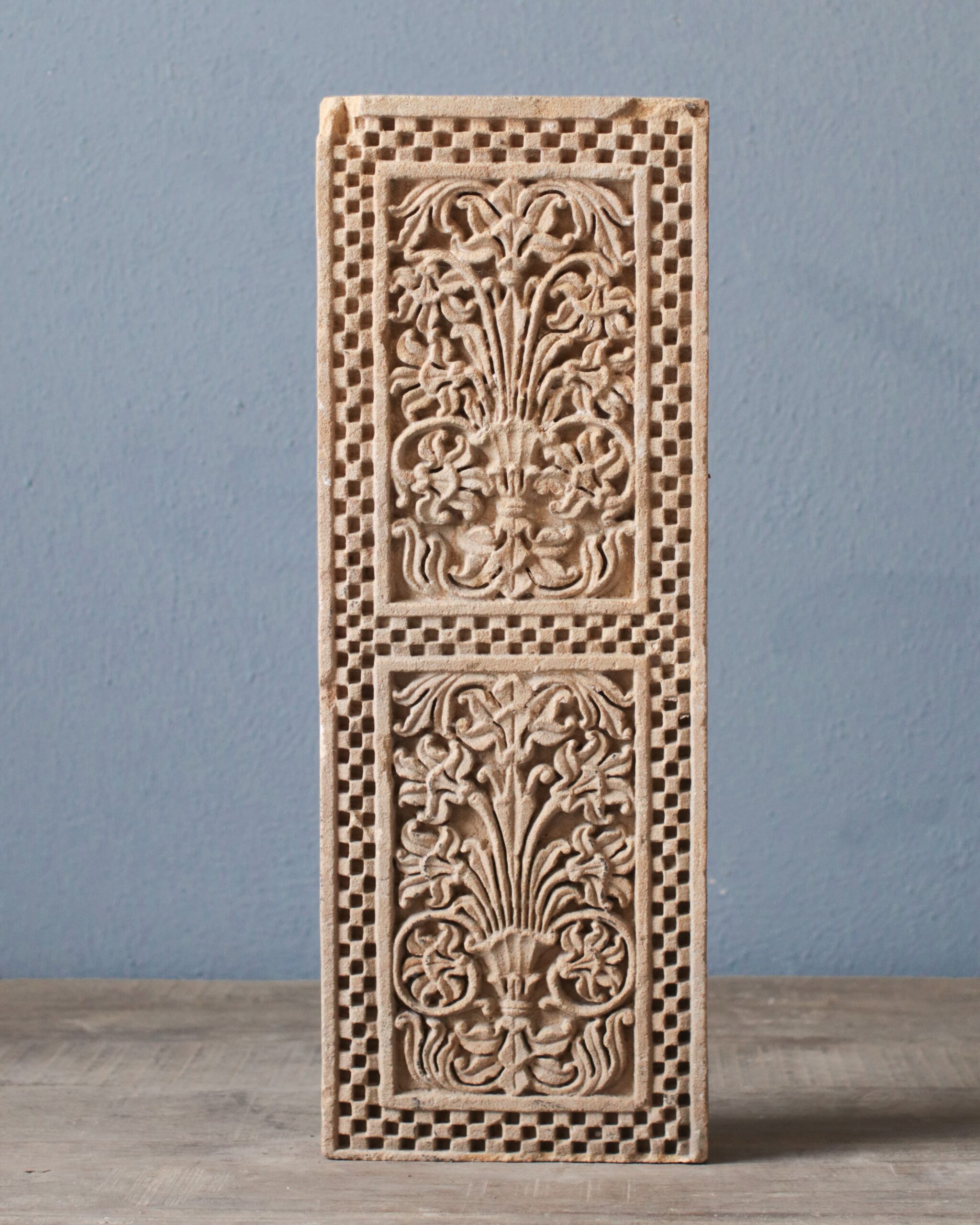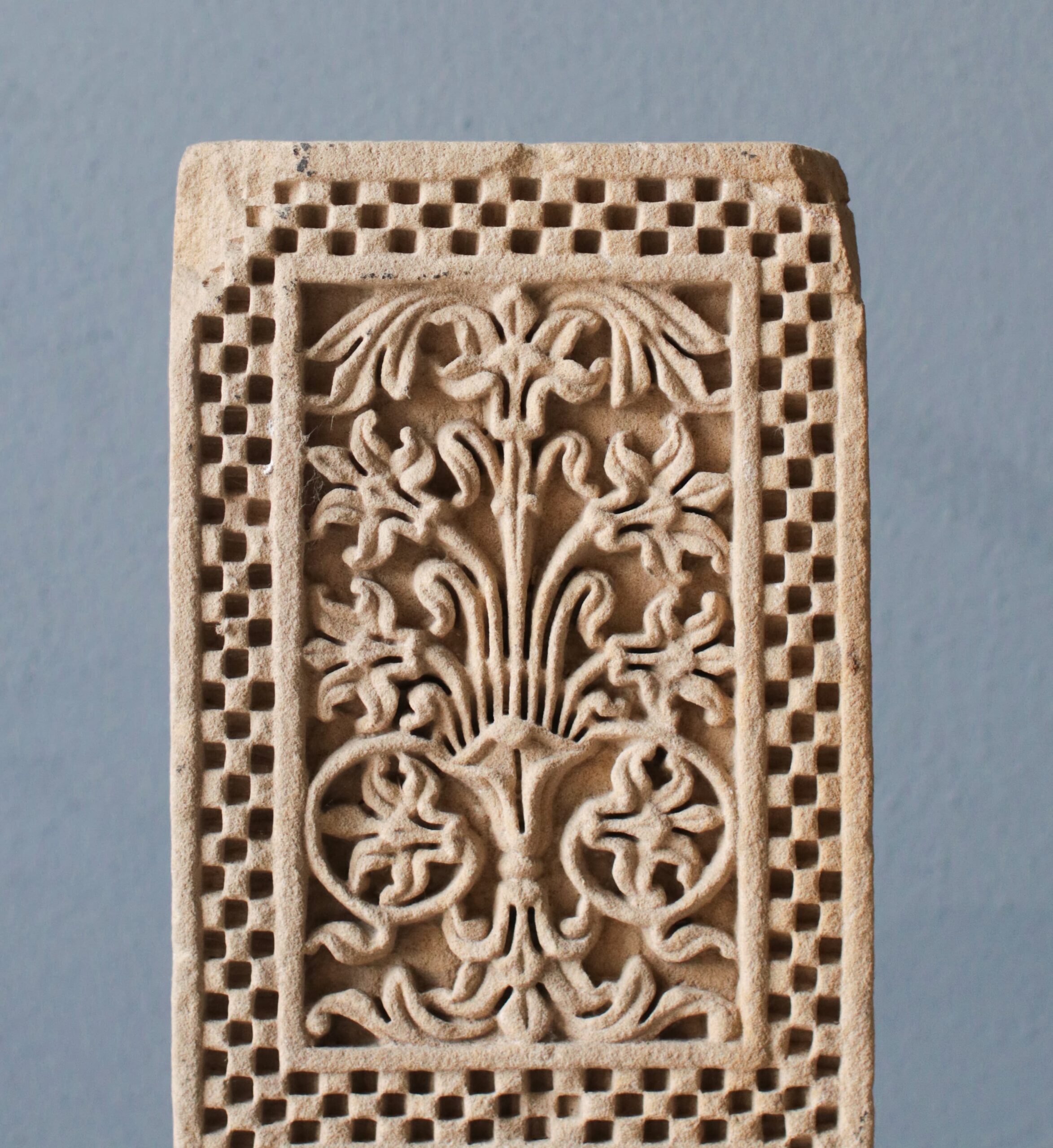 Exquisite pair of Jaisalmer stone panels with floral motifs & intricate latticework.