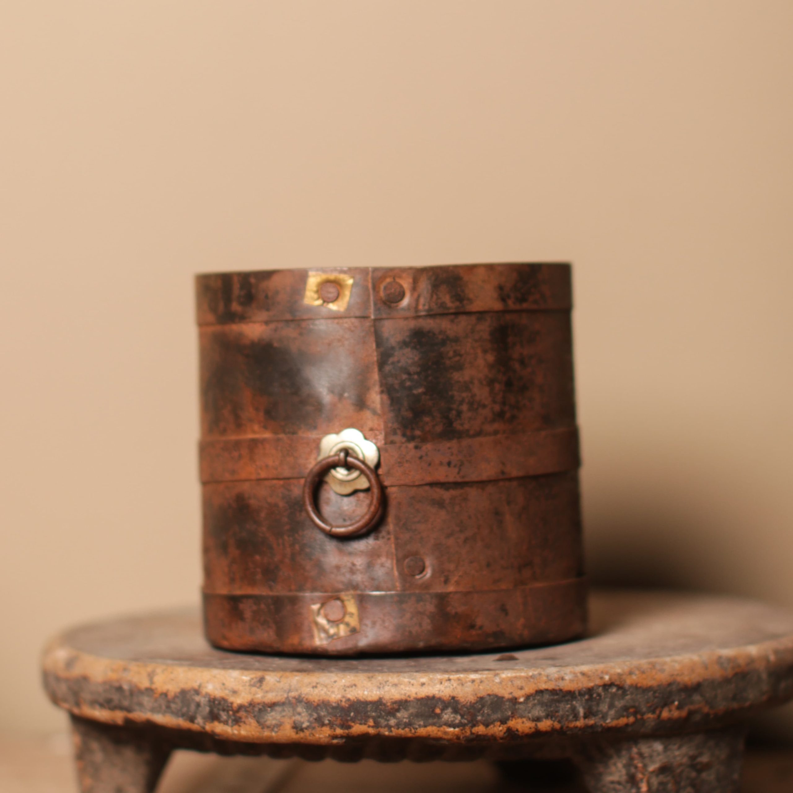 Embrace the rich history and rustic charm of this Set of 4 Manas. Originally used for measuring rice in bustling markets and streets, these handcrafted pots are a testament to traditional craftsmanship. Each pot in the collection varies in size, offering versatility and a touch of authenticity to your home Décor. The pots feature a beautiful aged patina and bear distinctive marks of wear.
