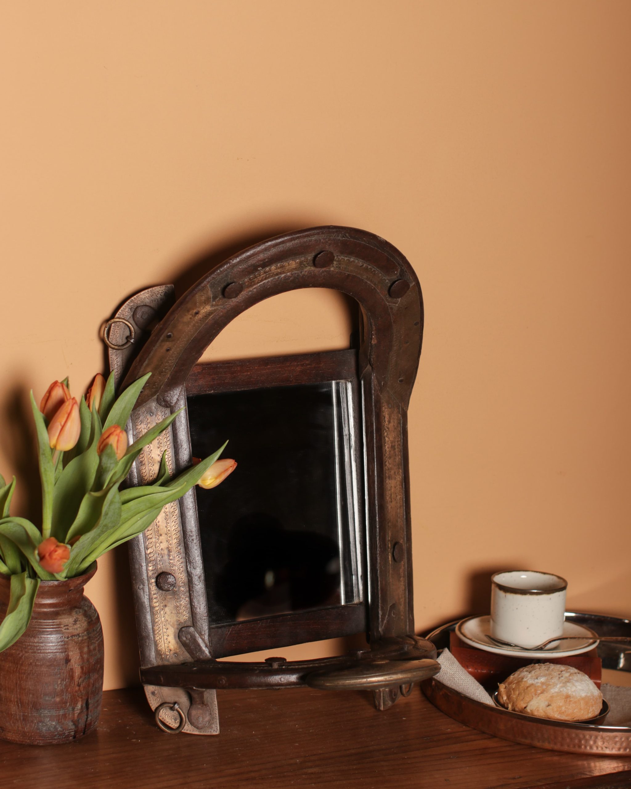 Home » Shop » Small Antique Saddle Mirror