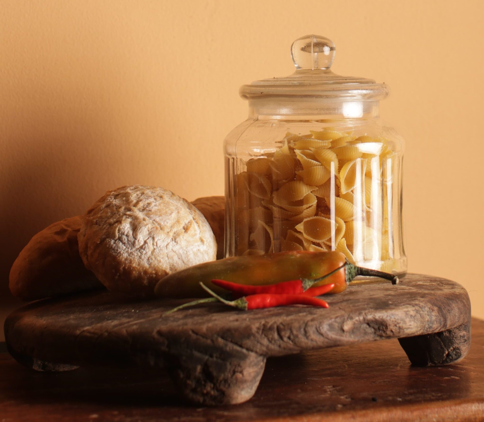 Elegant vintage glass jar, ideal for storing bathroom essentials or kitchen staples.