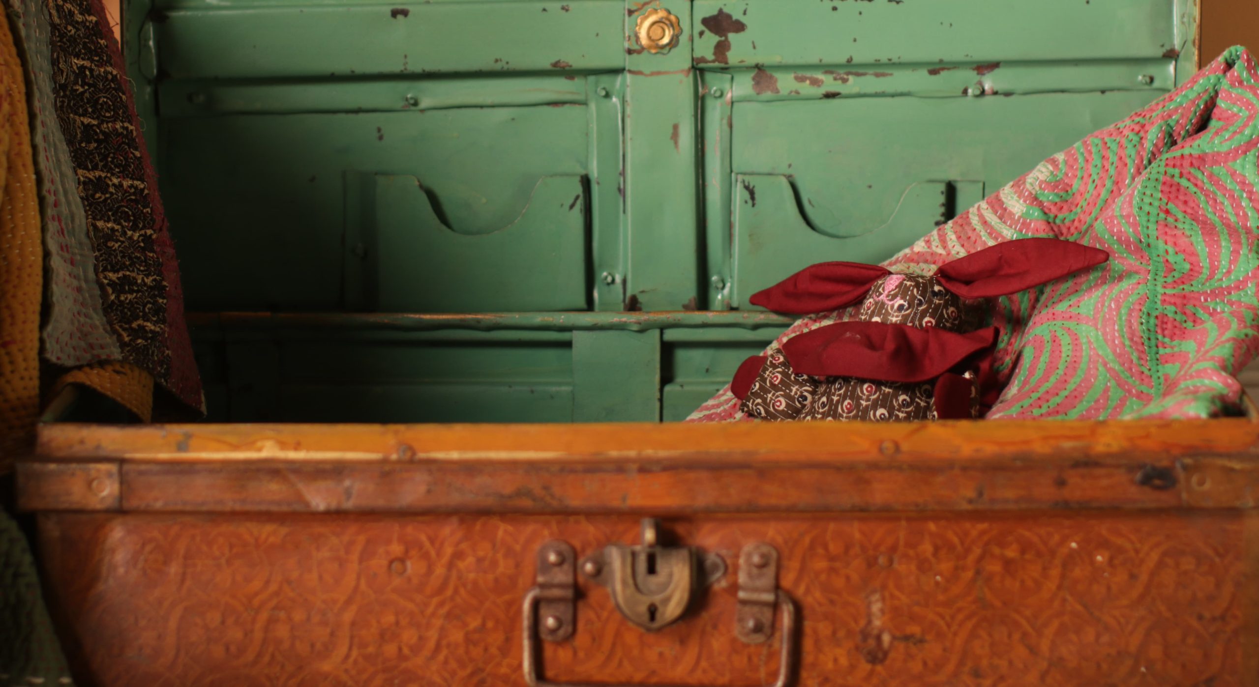 Embark on a journey through time with this exquisite Vintage Trunk, an old and original piece that has travelled across India. This metal suitcase, crafted to keep possessions safe during travel, blends robust functionality with artistic flair.